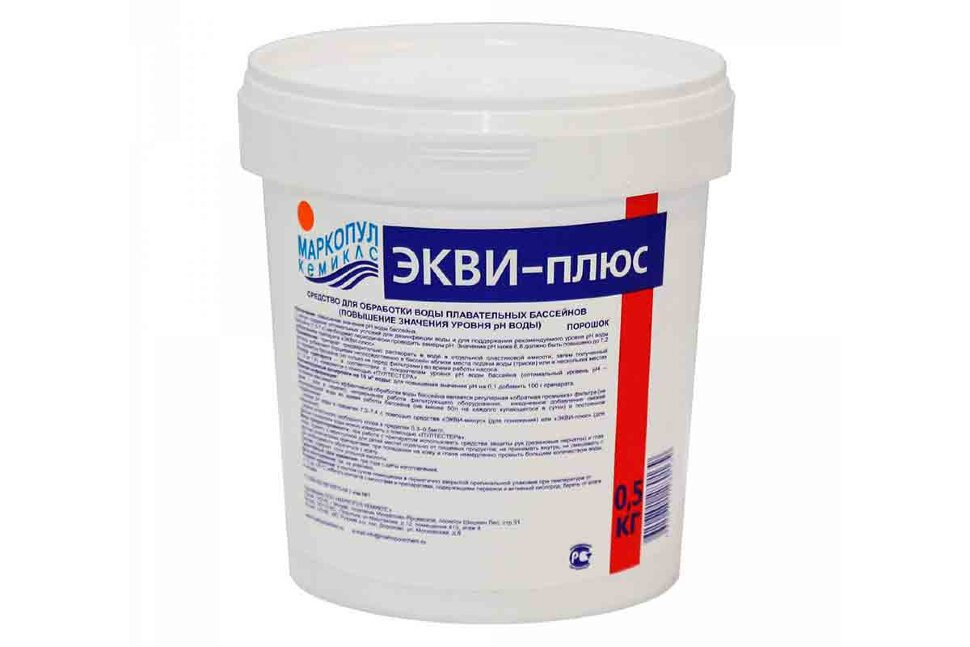 ЭКВИ-ПЛЮС - гранулированный порошок для повышения уровня рН воды. Удобен в применении для ручной дозировки и добавления в системы бассейна (препарат расфасован в пакеты).