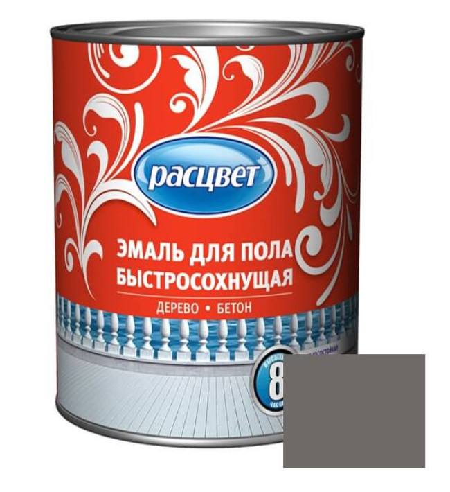 Эмаль Расцвет для пола быстросохнущая серая 0,9кг
