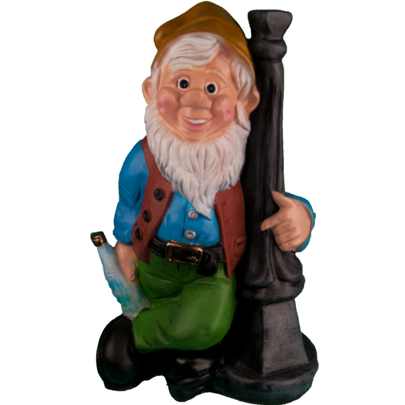 Фигура садовая Гном с бутылкой у столба