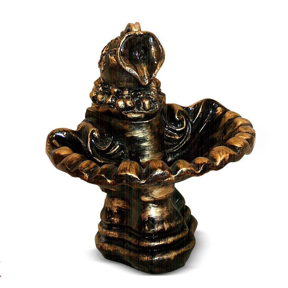 Материал изготовления полистоун. Устойчив к внешним атмосферным воздействиям. Работает от сети 220 v. Длина шнура 1,2 м. Фонтаны оснащен помпой, с помощью которой происходит циркуляция воды. Для установки и подключения необходимы электричество и вода. В нижнюю чашу фонтана наливается вода, которая впоследствии будет подниматься по внутреннему устройству с помощью помпы в верхнюю точку фонтана и спускаться вниз.