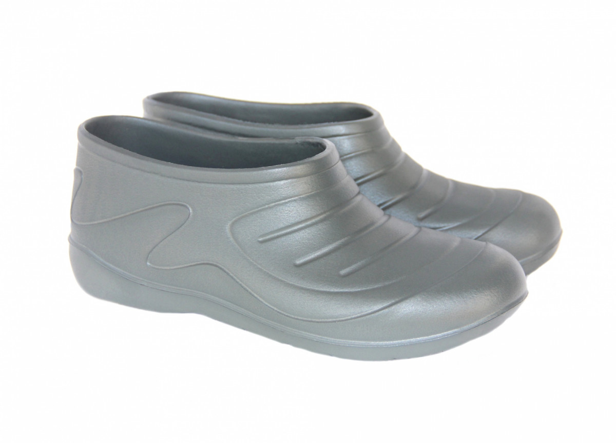 Материал ЭВА — прочный, упругий, легко моющийся, обладает антимикробным действием и нетоксичен. Пористая структура материала придает обуви амортизационные свойства, мягкость при ходьбе, устойчивость к истиранию подошвы.