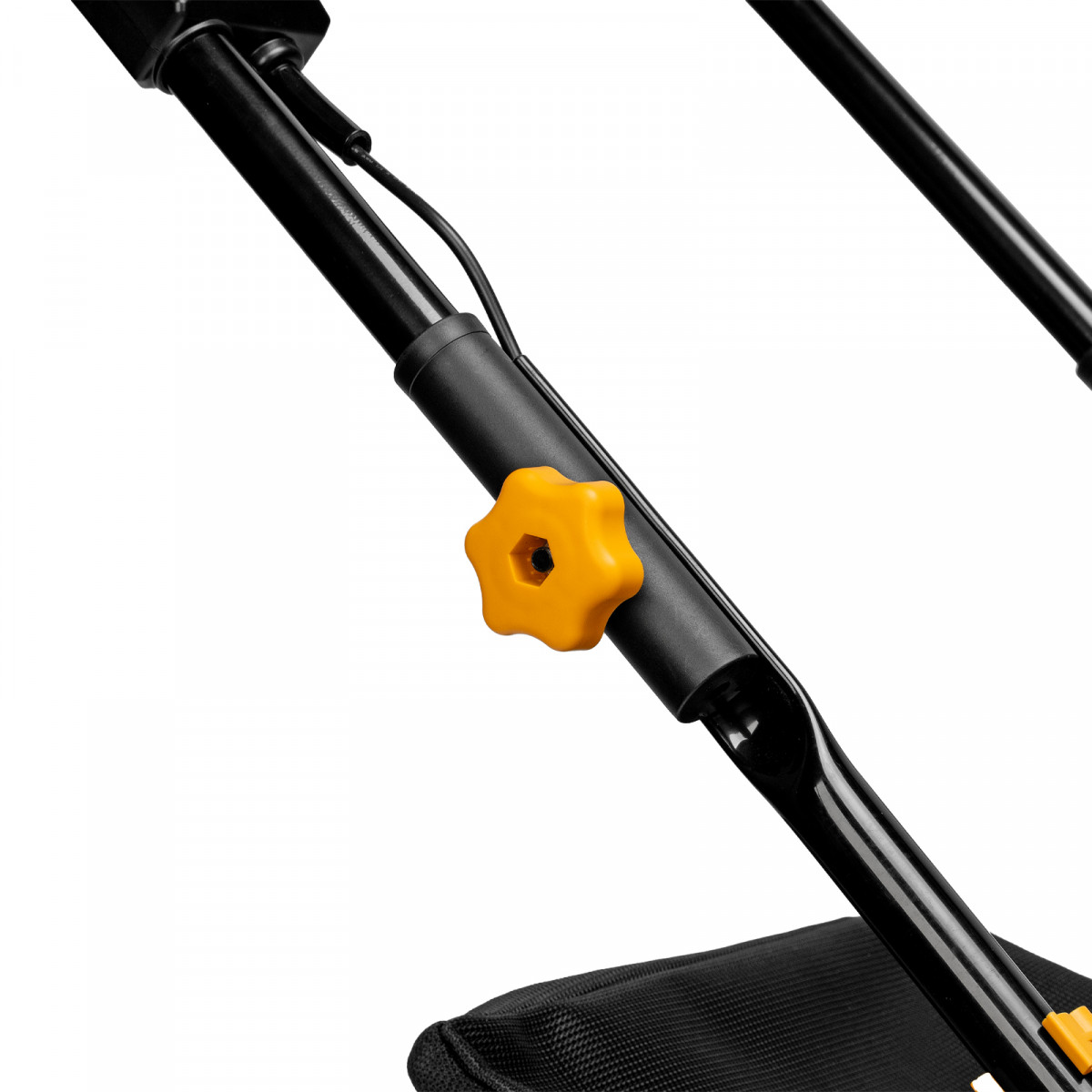 • Удобная эксплуатация — комбинированный травосборник объемом 70 л легко опустошать и чистить.