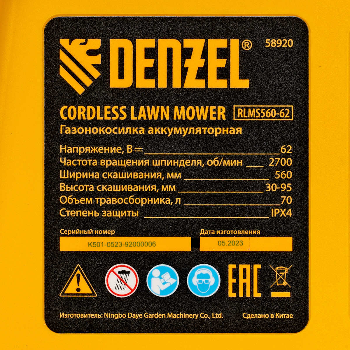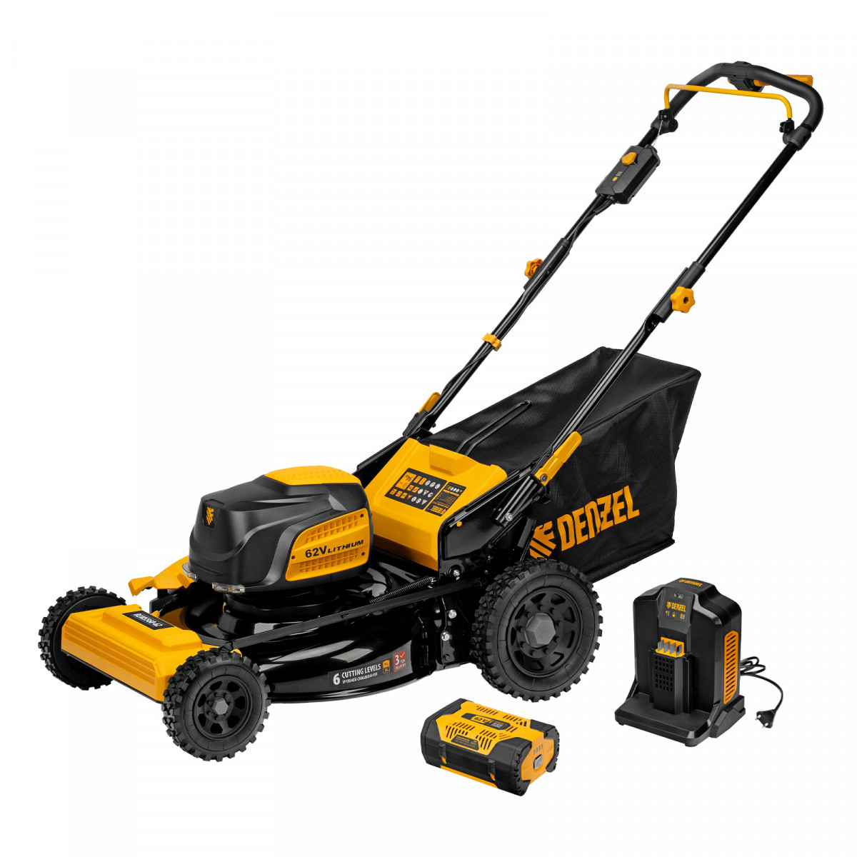 Инновационная аккумуляторная платформа Denzel High Power 62V обеспечивает высокую производительность и продолжительную работу.
