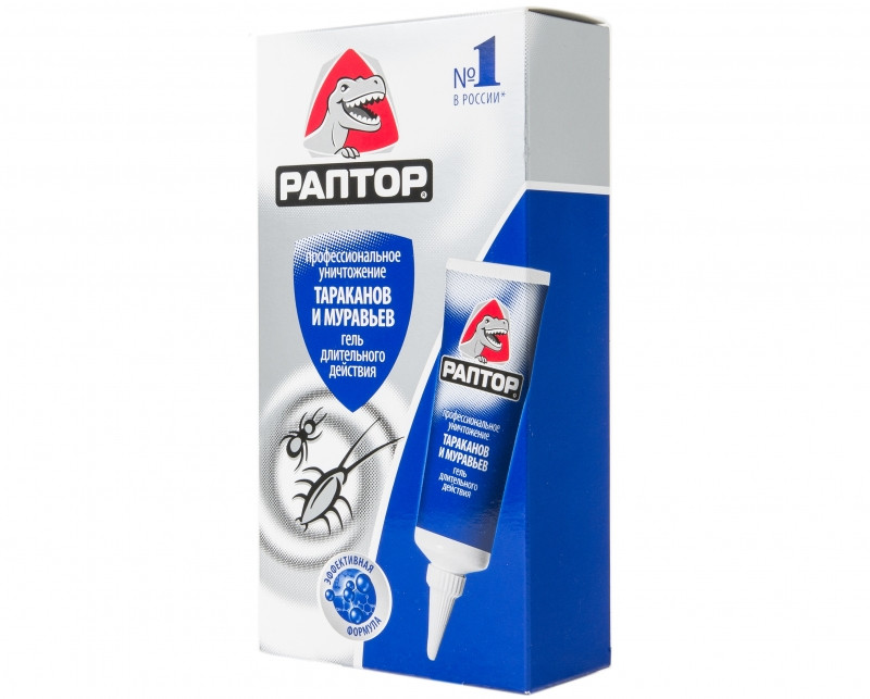 Гель обеспечивает быстрое действие и продолжительный эффект. Раптор от тараканов и муравьев - надежное и эффективное средство избавления от насекомых. Оптимальная формула, современные действующие вещества, лучшие ингридиенты - гарантия высокой эффуктивности и надежности. Гель абсолютно прозрачный. Уникальная консистенция геля Раптор позволяет ему долгое время удерживать влагу, что привлекает насекомых. Для более активного привлечения насекомых используется натуральный экстракт абрикоса. После высыхания не оставляет следов на поверхности и легко удаляется с любой поверхности. Длинный носик геля. Инструкция по применению:
