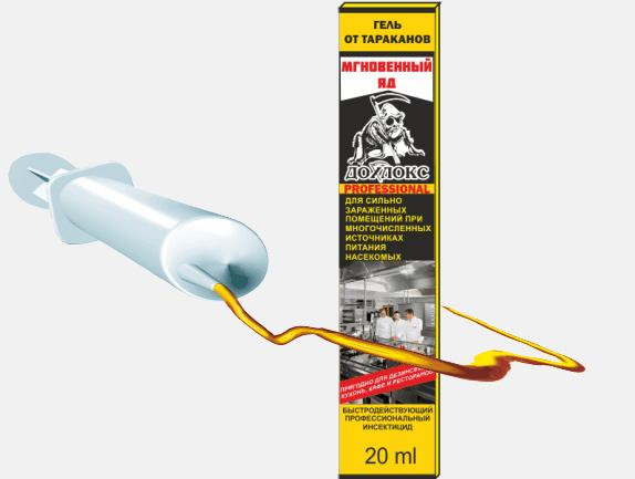 Шприц,эффективное ср-во от тараканов с повыш.содержанием отравляющего вещ-ва и аттрактантом(приманкой).Подходит д/обработки даже сильно заражен.помещ.с большим кол-вом источников альтернатив.питания насекомых(кухни,кафе,рест.и проч.)