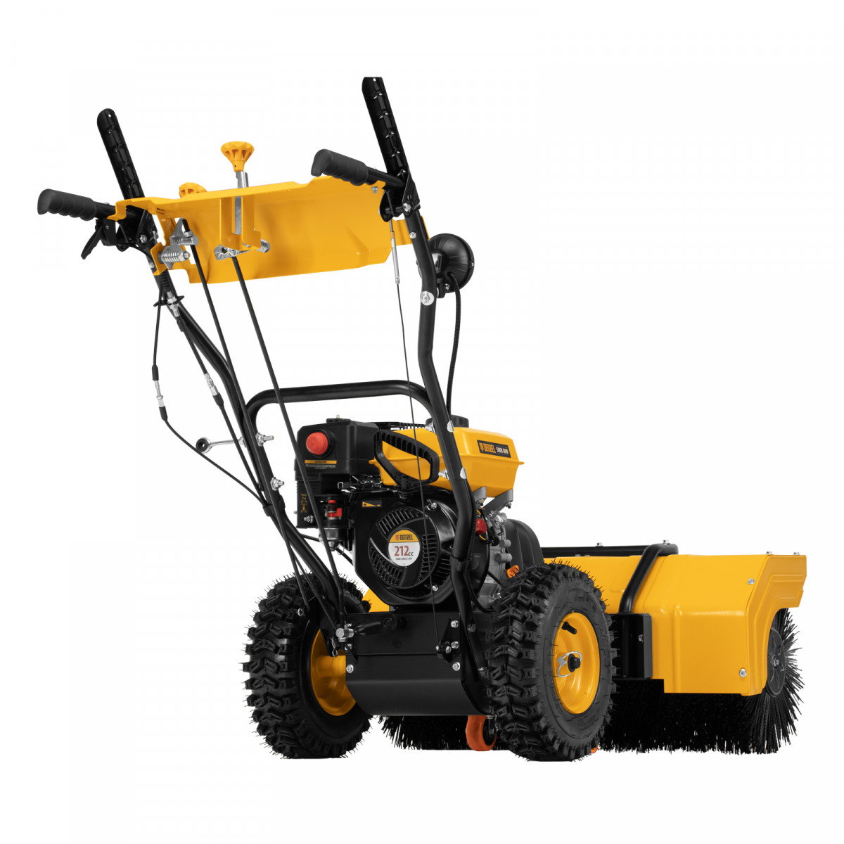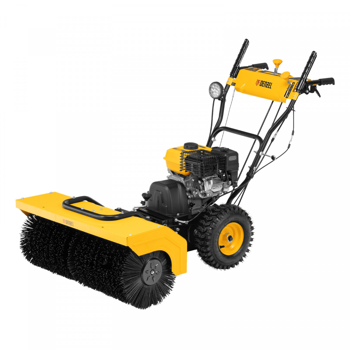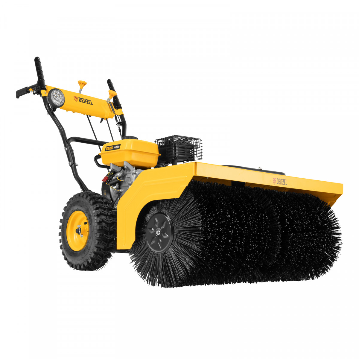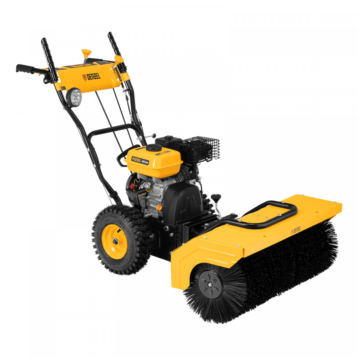 Гибридная снегоуборочная машина Denzel SWB-800 97662 с двигателем объемом 212 см3, ручным стартером и 2 насадками, предназначена для очистки территории от снега, а также может использоваться для уборки листвы, грязи, пыли и мусора. Благодаря приводу на колеса машину не нужно толкать. Ширина обработки щеткой составляет 800 мм, ширина снегоуборочной насадки — 560 мм при высоте захвата 430 мм. Машина позволяет быстро расчистить дорожки, тротуары, территорию парковки и т.д.