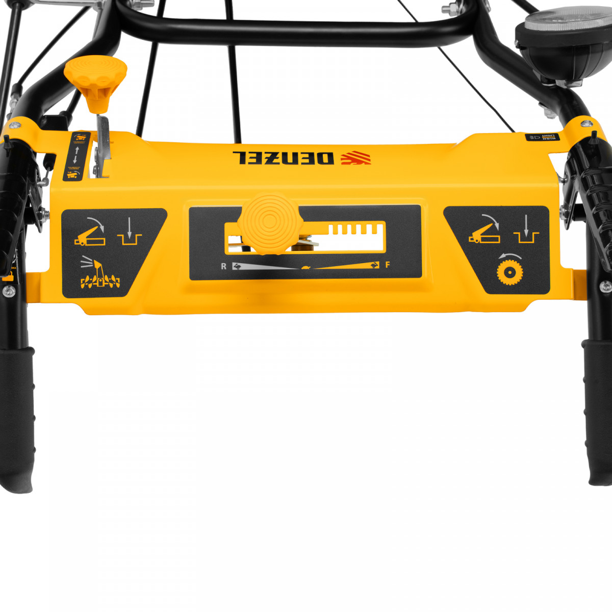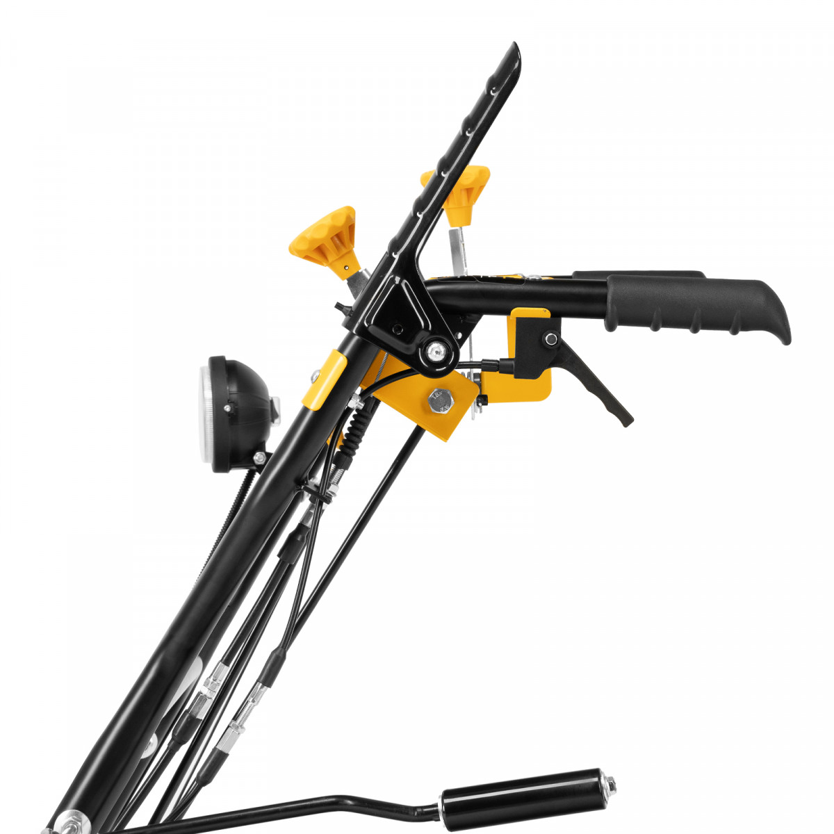 - Эргономичность — для регулировки положения разгрузочного желоба и подметальной насадки не нужно наклоняться.