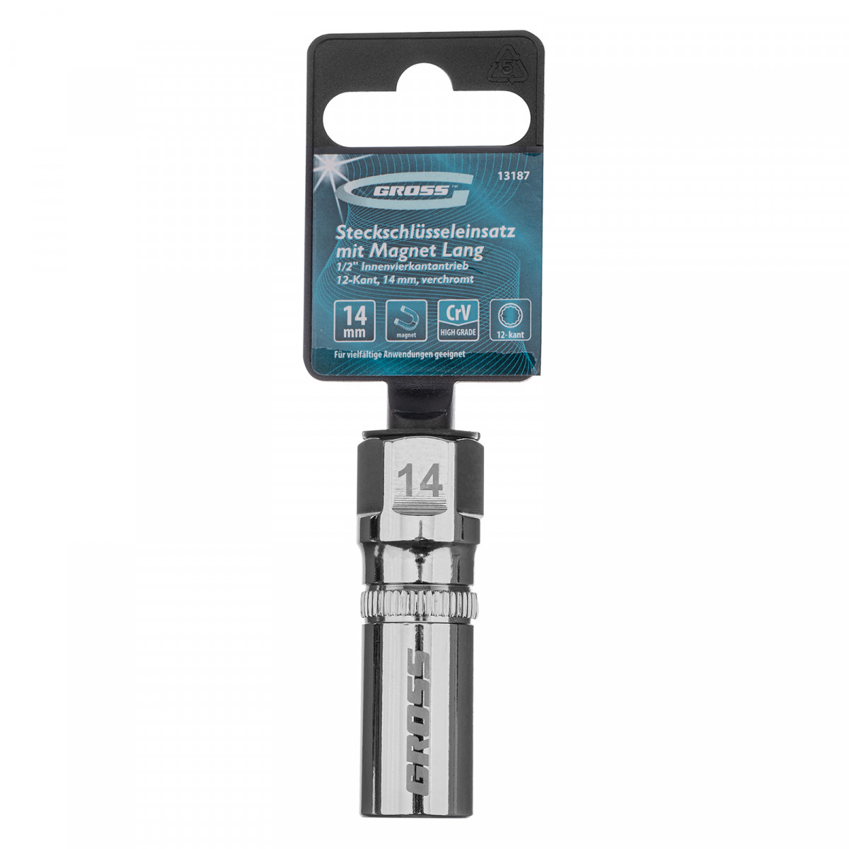 Свечная торцевая головка Gross 13187 под квадрат 1/2 дюйма, магнитная, 12-гранная, размером 14 мм, пригодится автомобилистам для замены и чистки свечей зажигания. Благодаря магнитному держателю позволяет надежно зафиксировать и быстро извлечь свечу. Торцевая головка длиной 65 мм и с 12-гранным зевом удобна для работы в ограниченном пространстве.