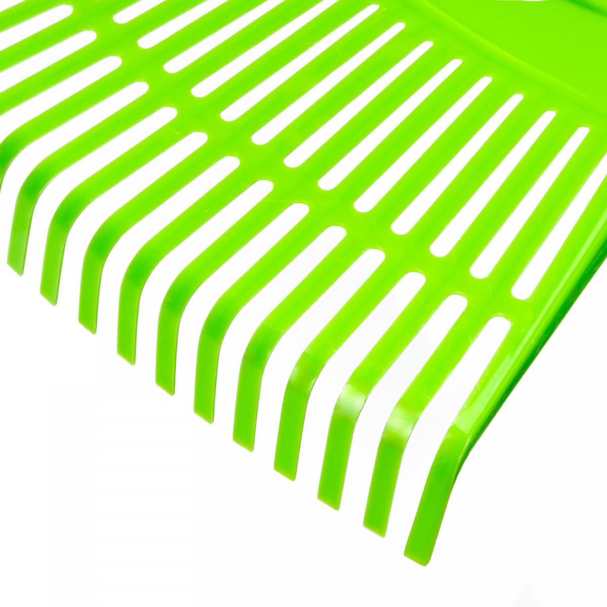 • Прочность и долговечность — грабли изготовлены из эластичного и стойкого к ультрафиолету полипропилена, основание усилено ребрами жесткости.