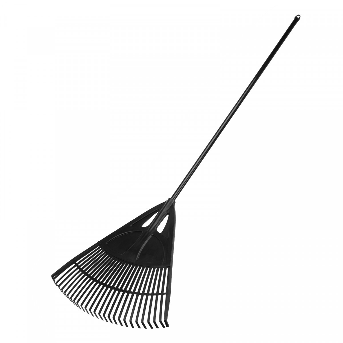 Плоские зубья эффективно собирают мусор, не повреждая растительность. Грабли поставляются в сборе с черенком и полностью готовы к использованию.