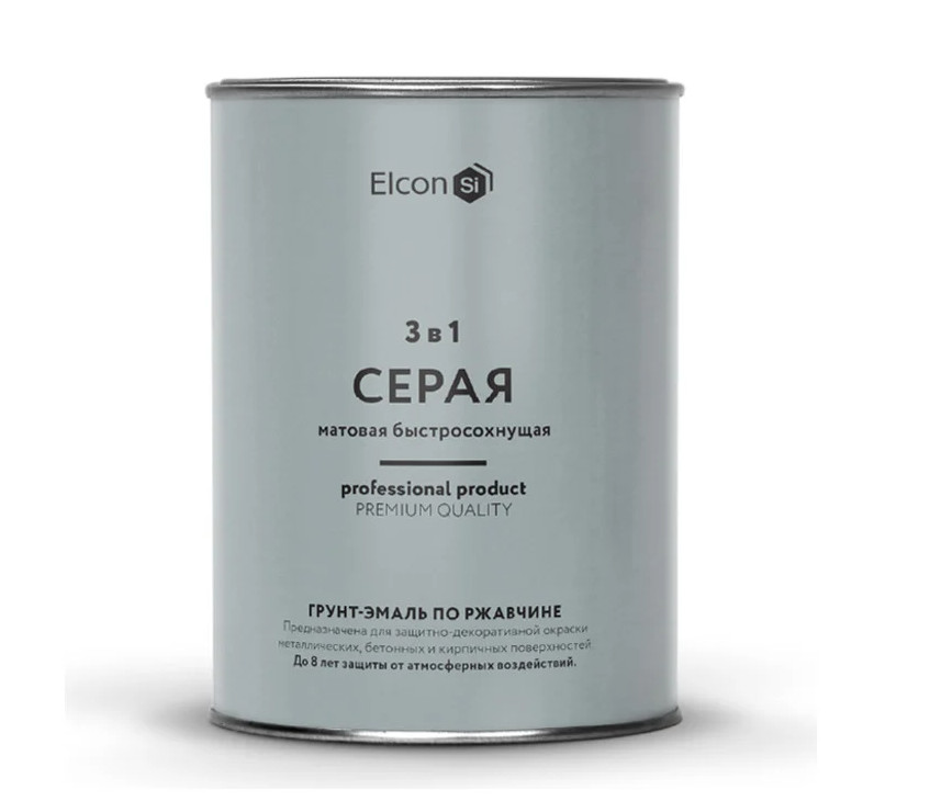 Грунт-эмаль по ржавчине 3в1 Элкон матовая серая RAL 7040 0,8кг