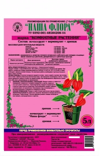 Грунт НАША ФЛОРА Комнатные растения с дренажом 5л