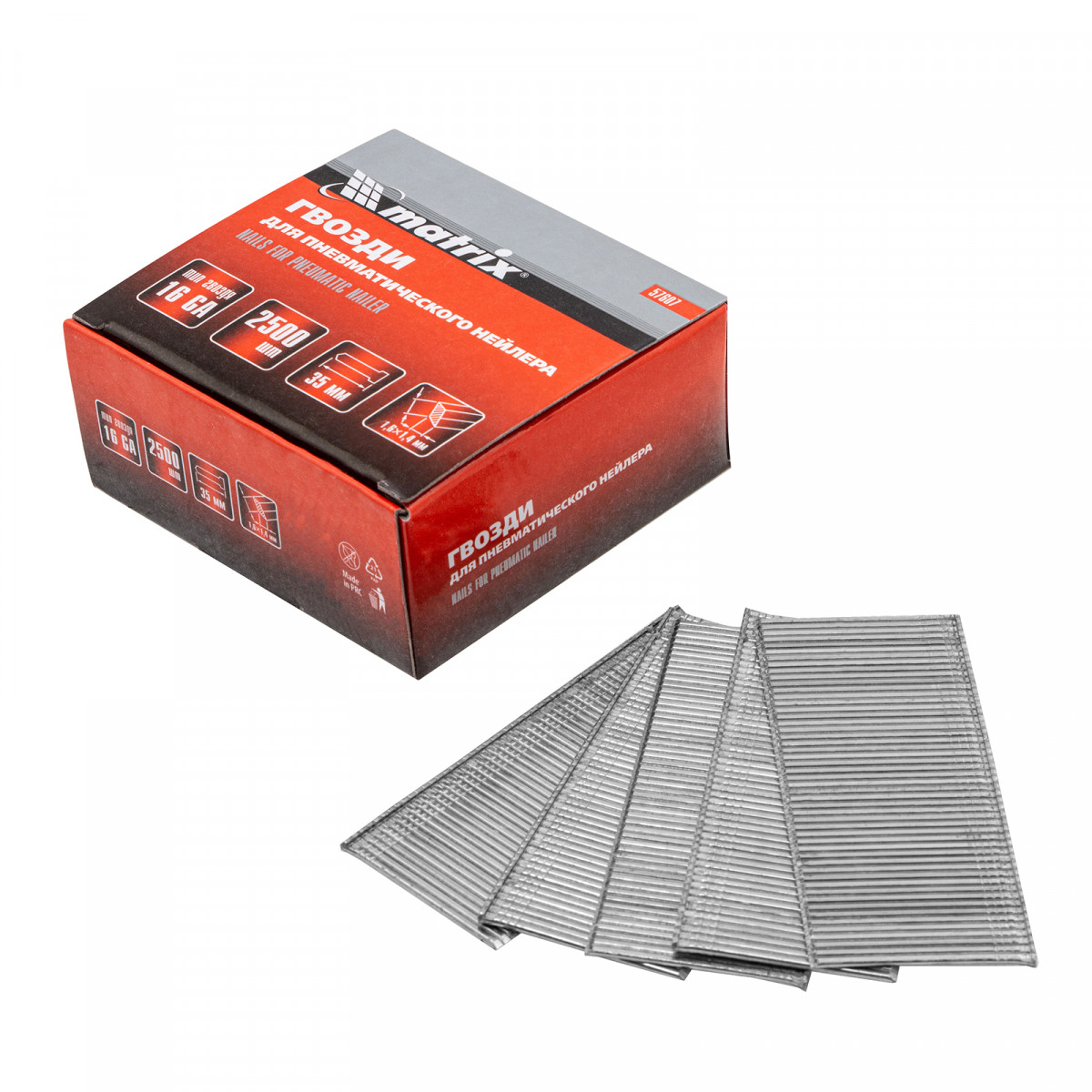 Гвозди для пневматического нейлера 16GA, сечение 1.6 х 1.4, длина 35 мм, 2500 шт Matrix