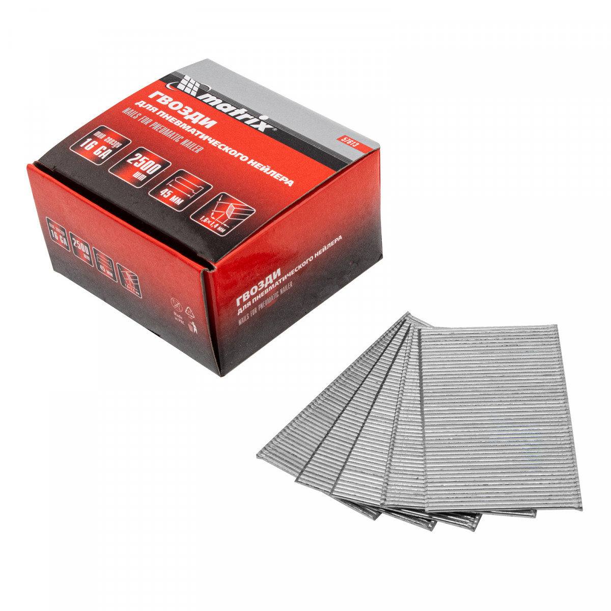 Гвозди для пневматического нейлера 16GA, сечение 1.6 х 1.4, длина 45 мм, 2500 шт Matrix