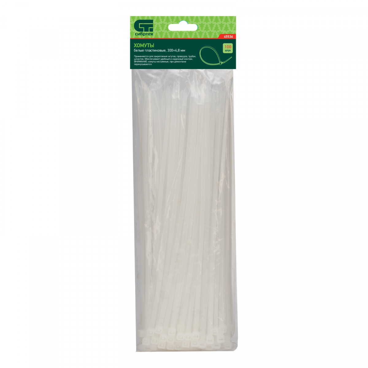 Хомуты, 300 x 4.8 мм, пластиковые, белые, 100 шт Сибртех