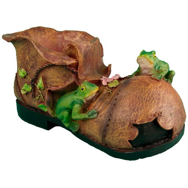 Декоративное кашпо для цветов в виде башмака с лягушками станет интересным украшением экстерьера Вашего сада. Кашпо отлично подойдет в качестве подарка на любой праздник. Вес: 0,9 кг
