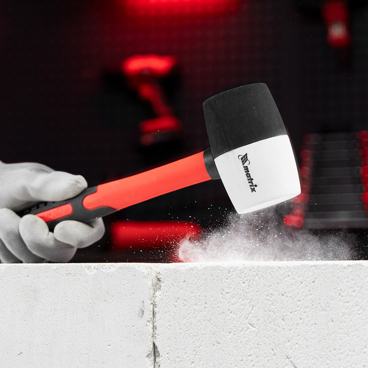 Резиновая киянка Matrix 11171 из черно-белой резины, с фибергласовой рукояткой и бойком весом 450 г, применяется при проведении монтажных, сборочных и кузовных работ, для укладки плитки. Инструмент обладает высоким показателем прочности, стойкостью к воздействию внешней агрессивной среды и хорошим вибропоглощением, поэтому подходит для профессионального применения.