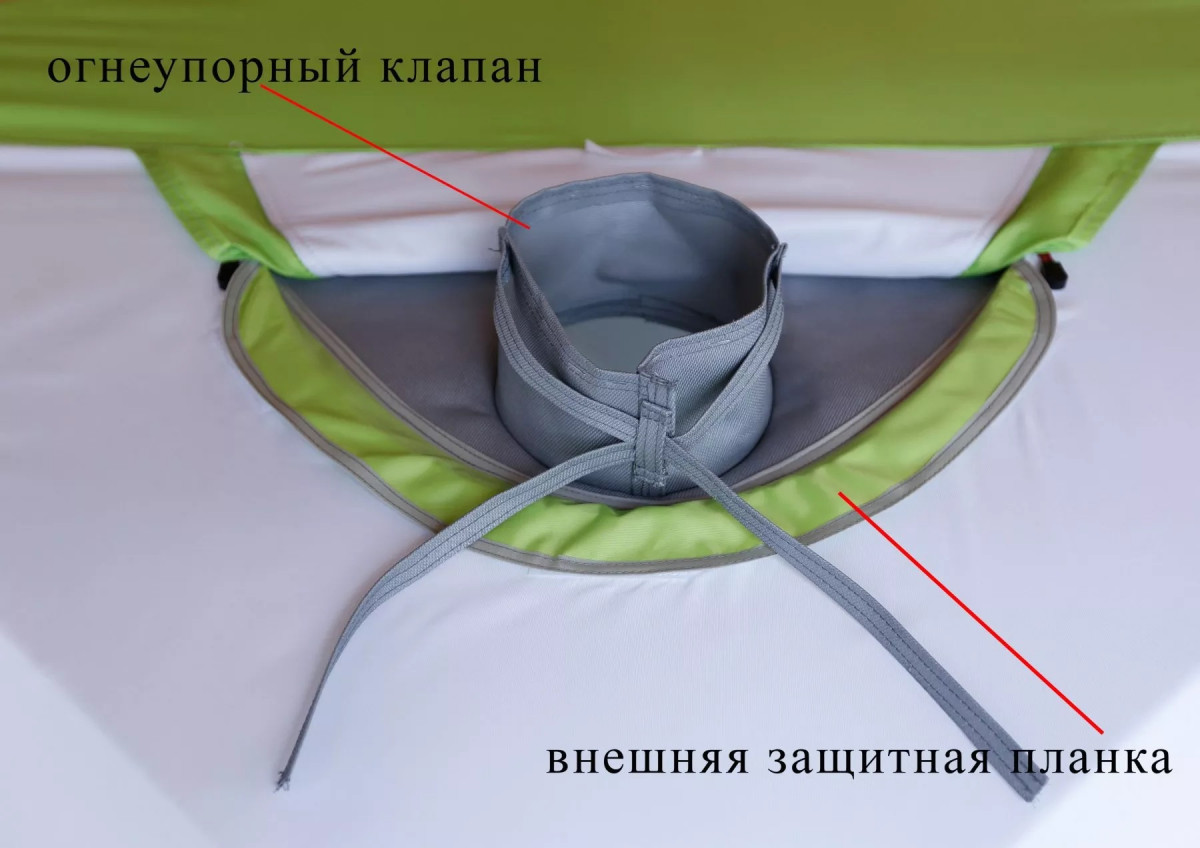 Клапан огнеупорный для палаток серии ЛОТОС Куб (кремнезем 1000°С) предназначен для фиксации и вывода вытяжной трубы дровяной печи и прочих обогревательных приборов, установленных внутри палатки (выполняет функцию «разделки» для вытяжной трубы системы обогрева).