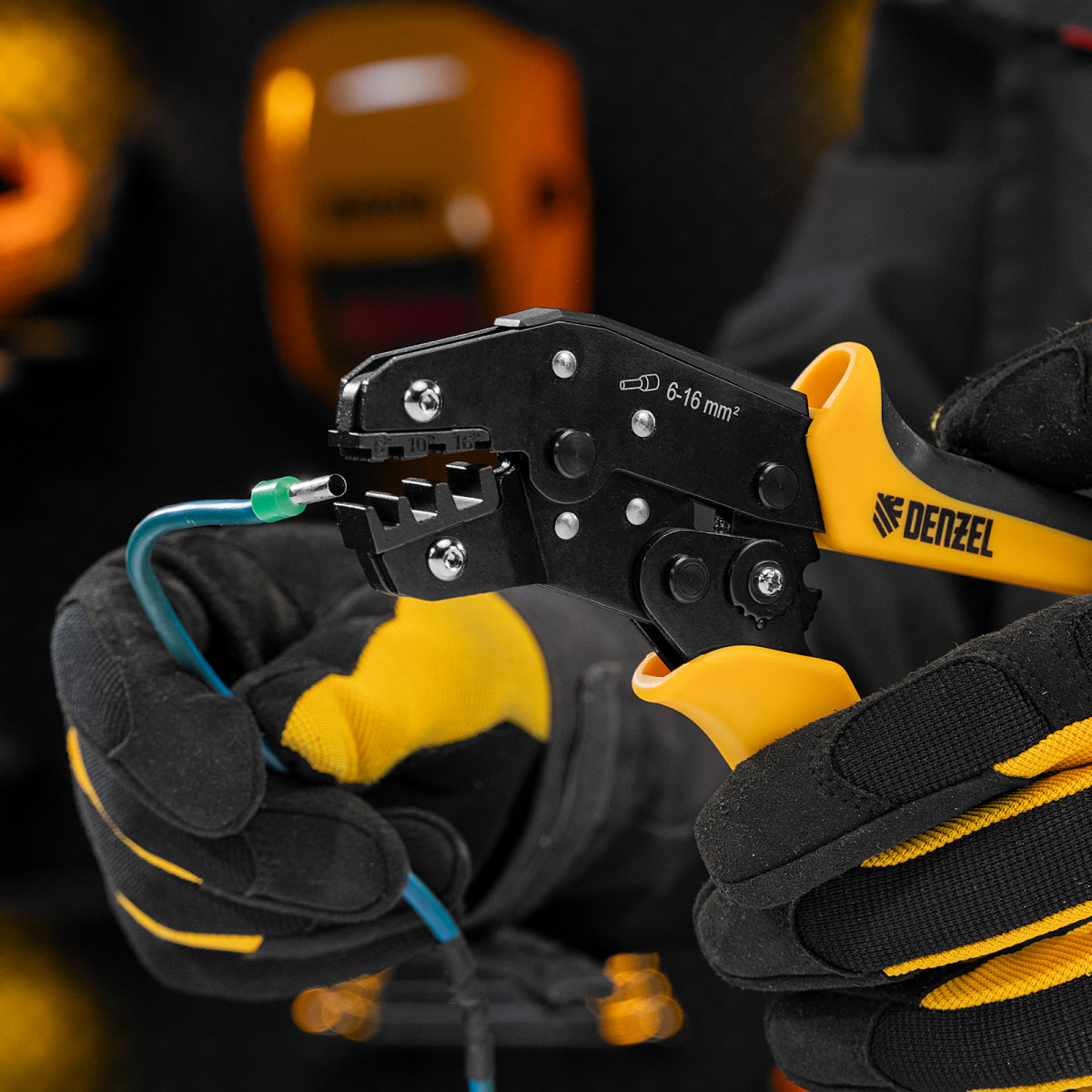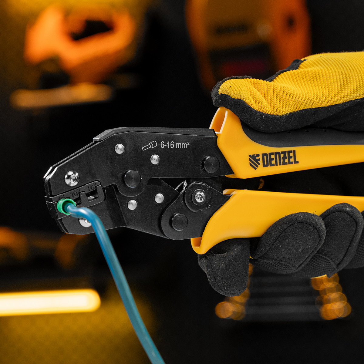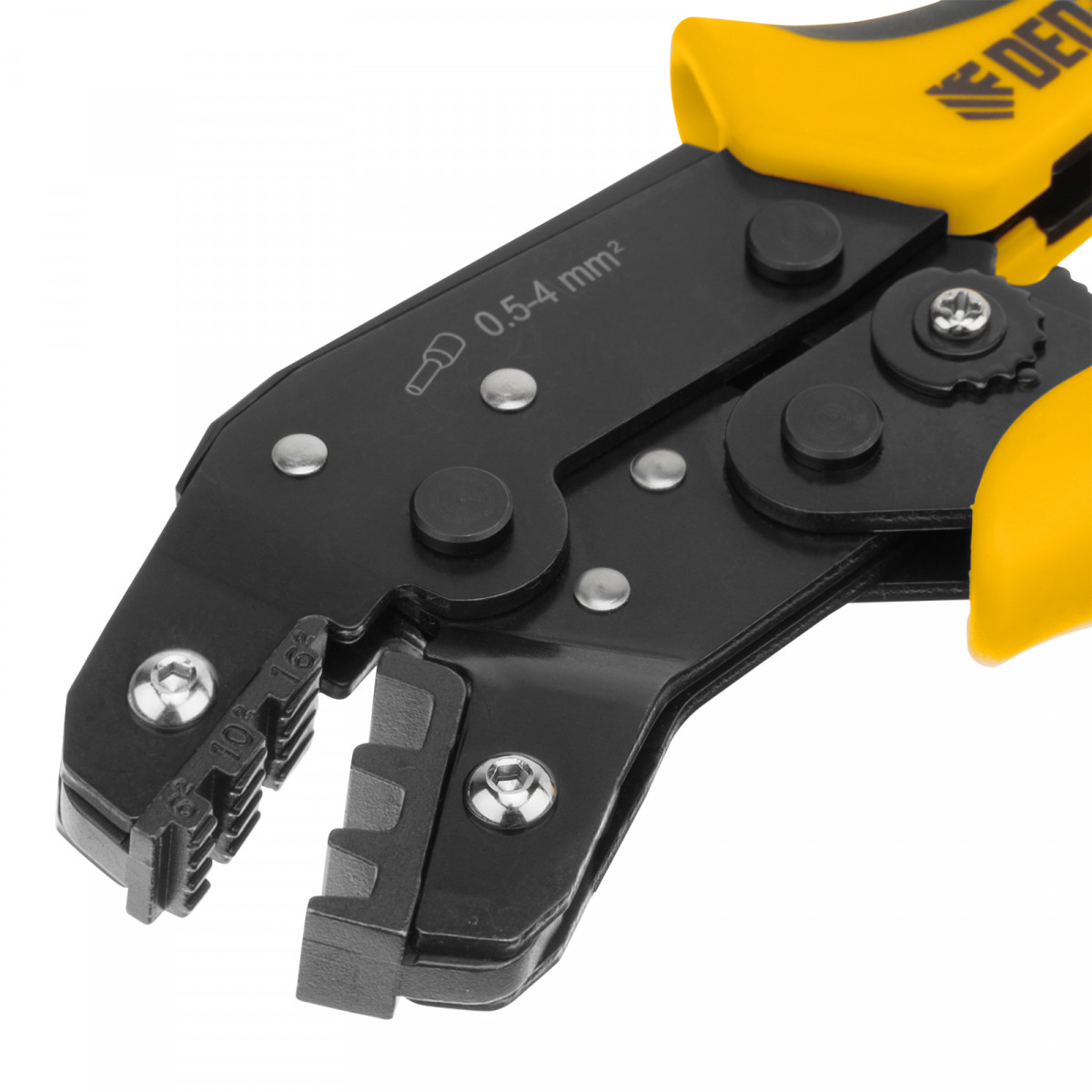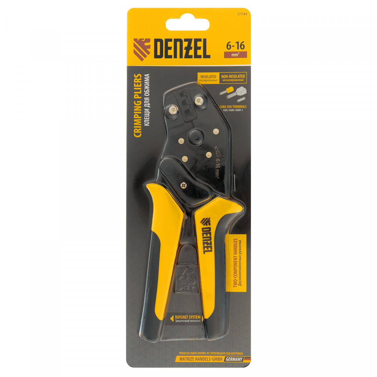 Клещи Denzel 17744 предназначены для обжима наконечников штыревых втулочных НШВ, НШВИ, НШВИ-2 сечением 6-16 мм². Двухрычажная передача усилия сжатия позволяет увеличить эффективность работы без дополнительный усилий мастера. Инструмент пригодится частным и профессиональным мастерам при проведении электромонтажных работ.
