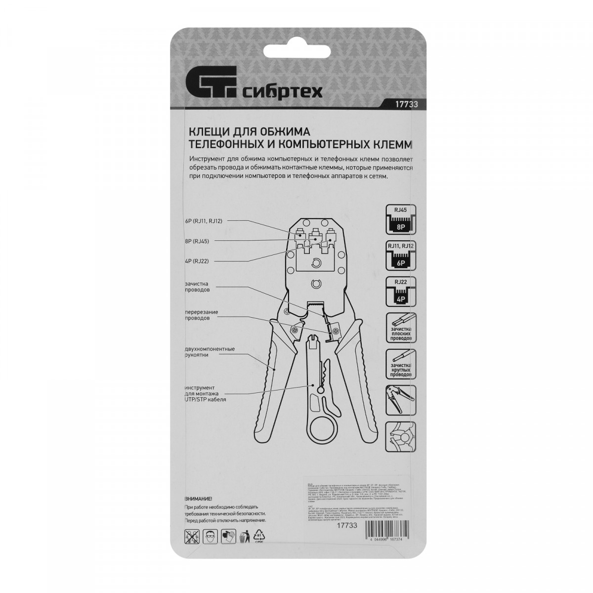 Клещи для обжима телефонных и компьютерных клемм 4P, 6P, 8P, функция обрезания проводов Сибртех