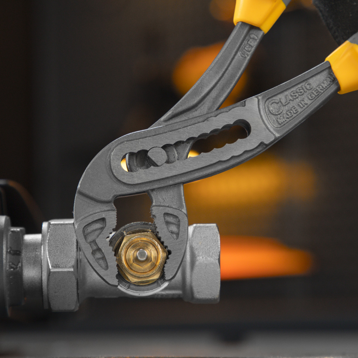 Переставные клещи Denzel 17900 длиной 240 мм, с трехкомпонентными рукоятками, предназначены для фиксации и вращения деталей и заготовок различной формы. Подходят для захвата фитингов, труб, крепежных элементов. Инструмент используется при проведении ремонтных, монтажных, сантехнических работ.