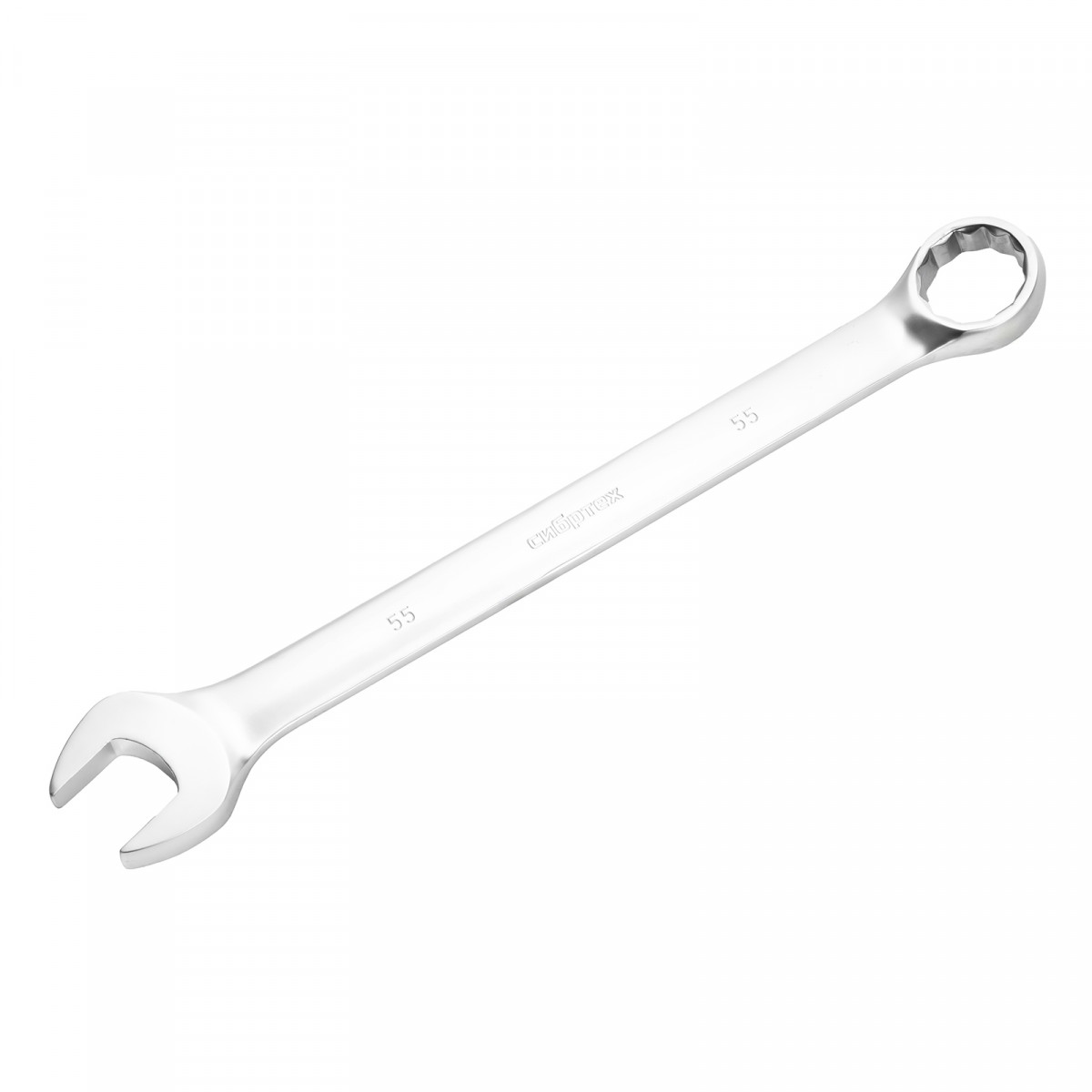Ключ комбинированный 55мм, никелированный от компании Сибртех — надежный инструмент для работы с крепежом различных размеров.
