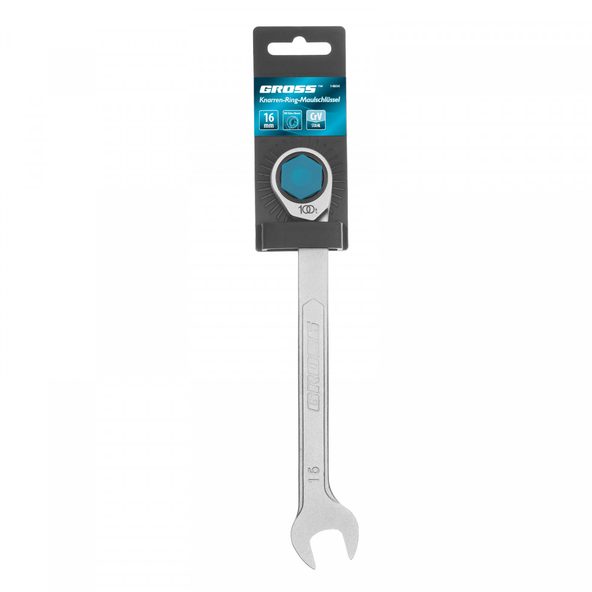 Ключ комбинированный трещоточный, 16 мм, количество зубьев 100 Gross