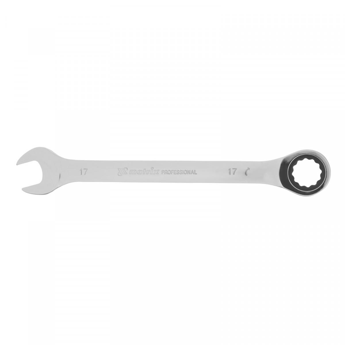 Ключ комбинированный трещоточный, 17 мм, CrV, зеркальный хром Matrix Professional