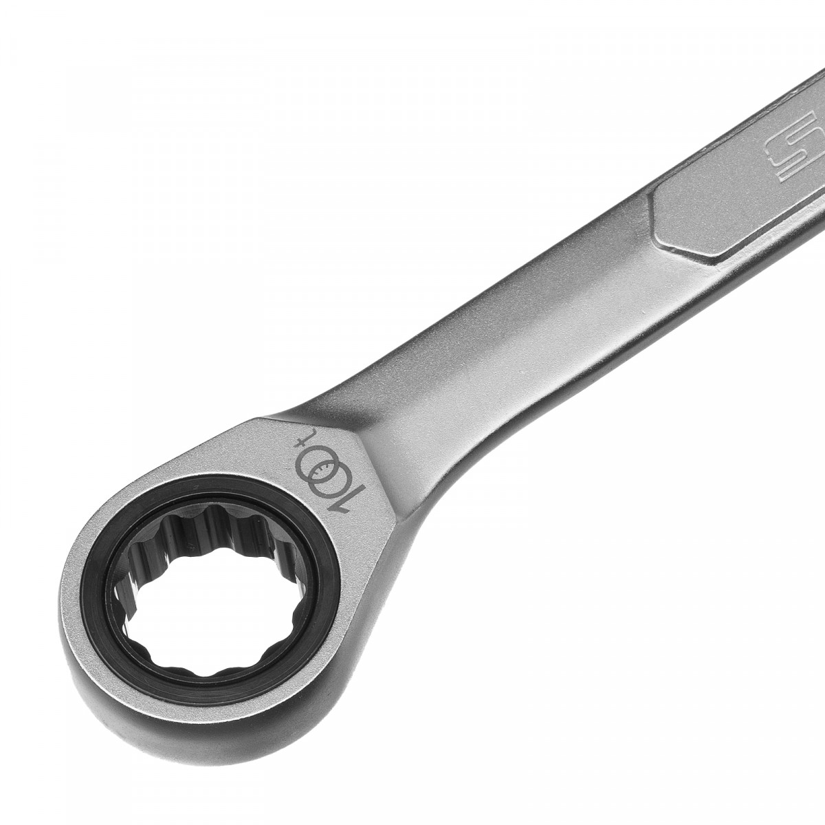 • Храповый механизм оснащен 100 зубцами, что обеспечивает плавность хода инструмента (шаг трещотки всего 3,6 градусов) и делает его удобным для работы в ограниченном пространстве.