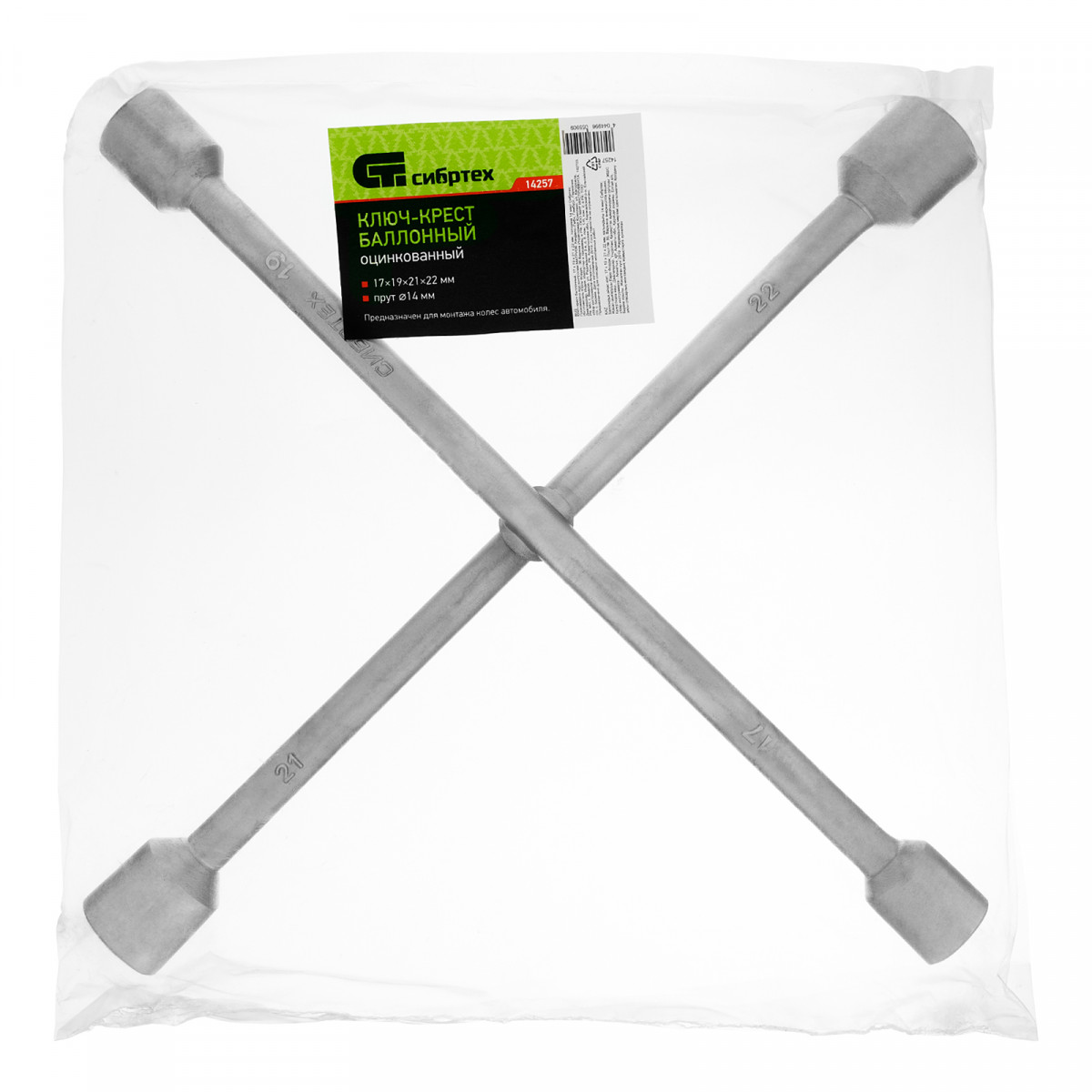 Ключ-крест баллонный, 17 х 19 х 21 х 22 мм, толщина 14 мм Сибртех