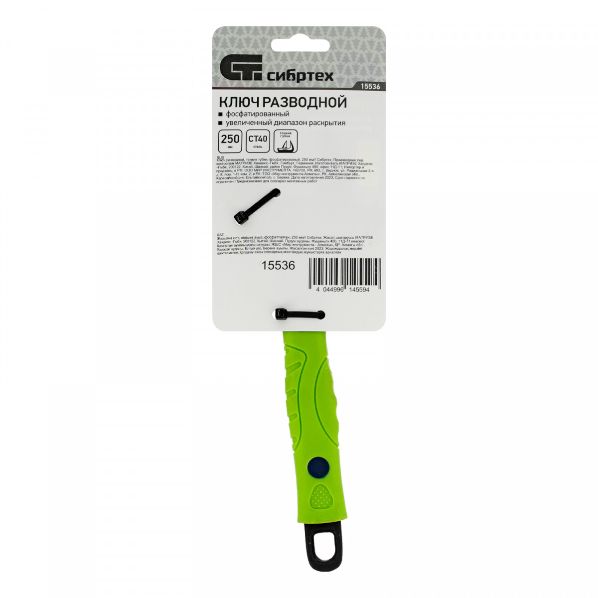 Ключ разводной, 250 мм, тонкие губки, фосфатированый Сибртех