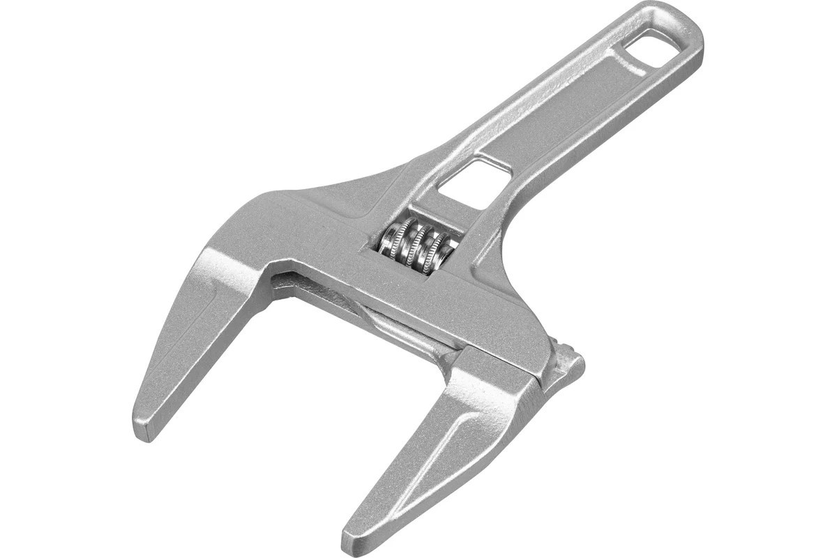 Ключ разводной алюминиевый Denzel с тонкими губками оптимален для монтажа и демонтажа хромированных и пластмассовых крепежных элементов.