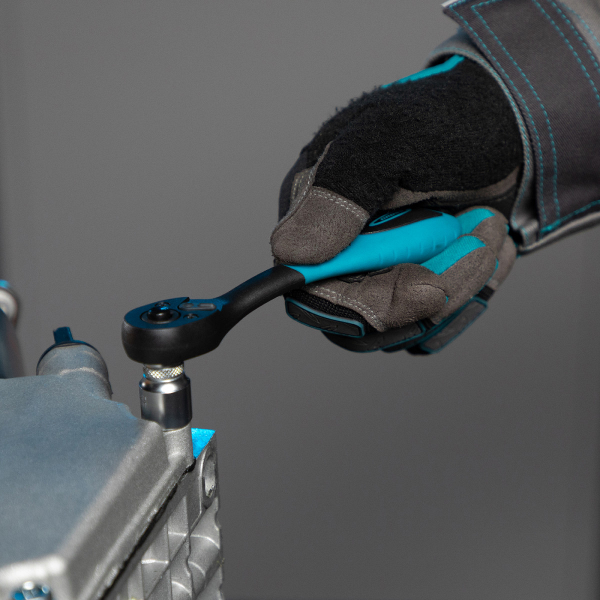 - Быстрый переход от монтажа к демонтажу — флажковый переключатель позволяет мгновенно изменить направление вращения храповика.