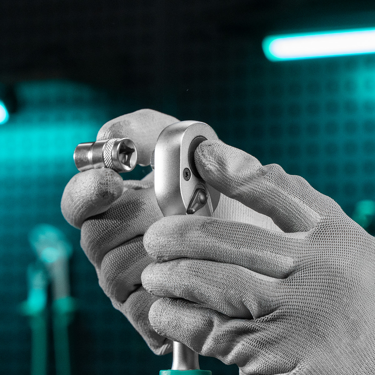 - Шариковый фиксатор — торцевые головки и другие насадки не соскакивают во время работы.