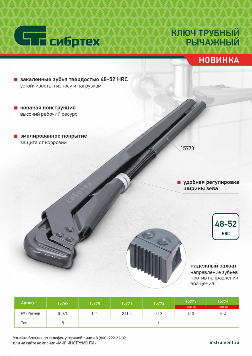 Кованый трубный рычажный ключ Сибртех №3 15772, тип «L», используется для захвата и вращения труб диаметром 2", а также других деталей со специальным профилем и без него. Рычажный механизм увеличивает рабочее усилие, снижая нагрузку на руки мастера. Инструмент рассчитан на бытовое и профессиональное применение.