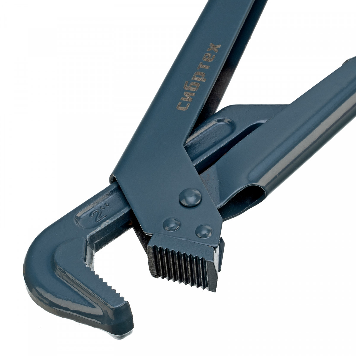 Ключ с закаленными губками из легированной стали (48-52 HRC) обеспечивает высокий рабочий ресурс.
