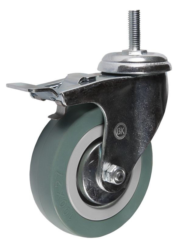 Колесо аппаратное SCtgb42 со штырем и тормозом относится к легкой серии колес. Ободная часть аппаратной колесной опоры со штырем и тормозом SCtgb42 изготовляется из серого полипропилена с двумя боковыми пыльниками, защищающими осевой механизм от повреждения посторонними веществами и пылью.