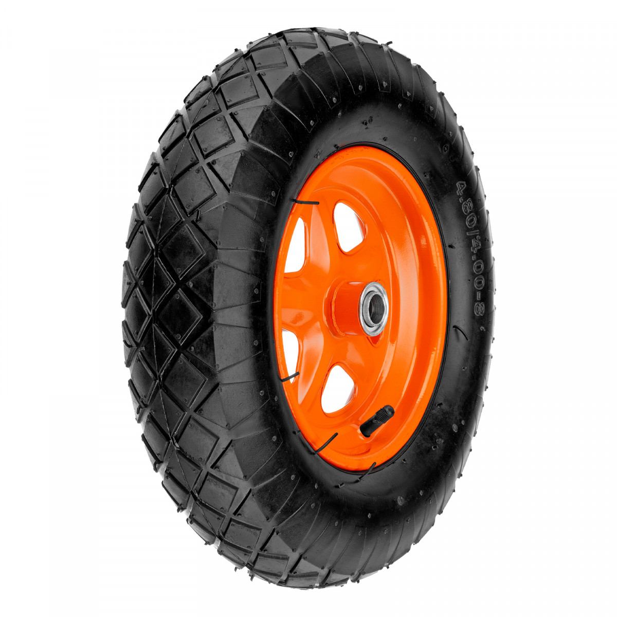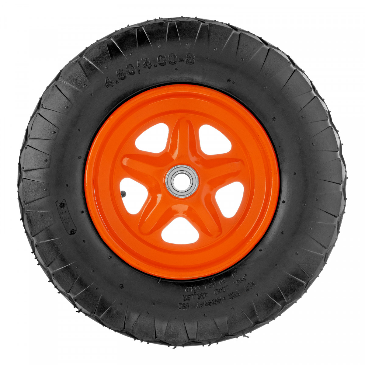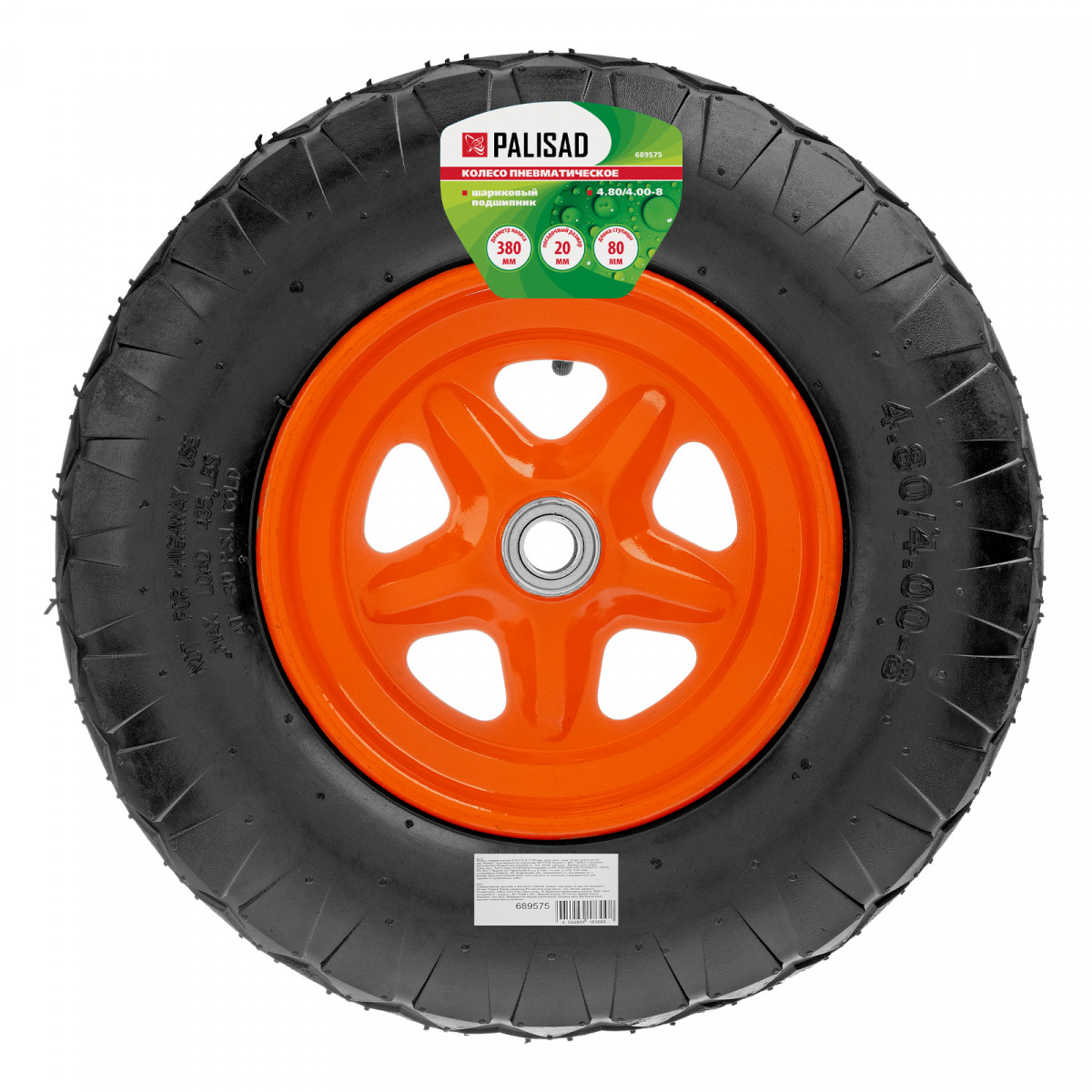 Пневматическое колесо 4,80/4,00-8 Palisad «Звезда» 689575 диаметром 380 мм имеет длину оси 80 мм и внутренний диаметр подшипника 20 мм, устанавливается на тачку Сибртех 68936 для транспортировки грузов. Обладает хорошей проходимостью, а благодаря стальным подшипникам выдерживает нагрузки до 320 кг.