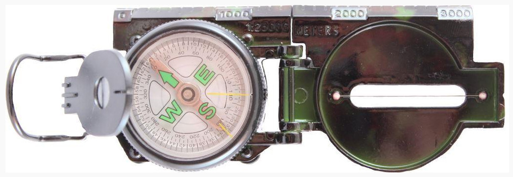 Компас в металлическом корпусе. Лимб совмещен со стрелкой, поэтому нет необходимости совмещать «север» стрелки с «севером» корпуса. Удобен в использовании и при ношении, функционален, выполнен как армейский вариант в цвете камуфляж.