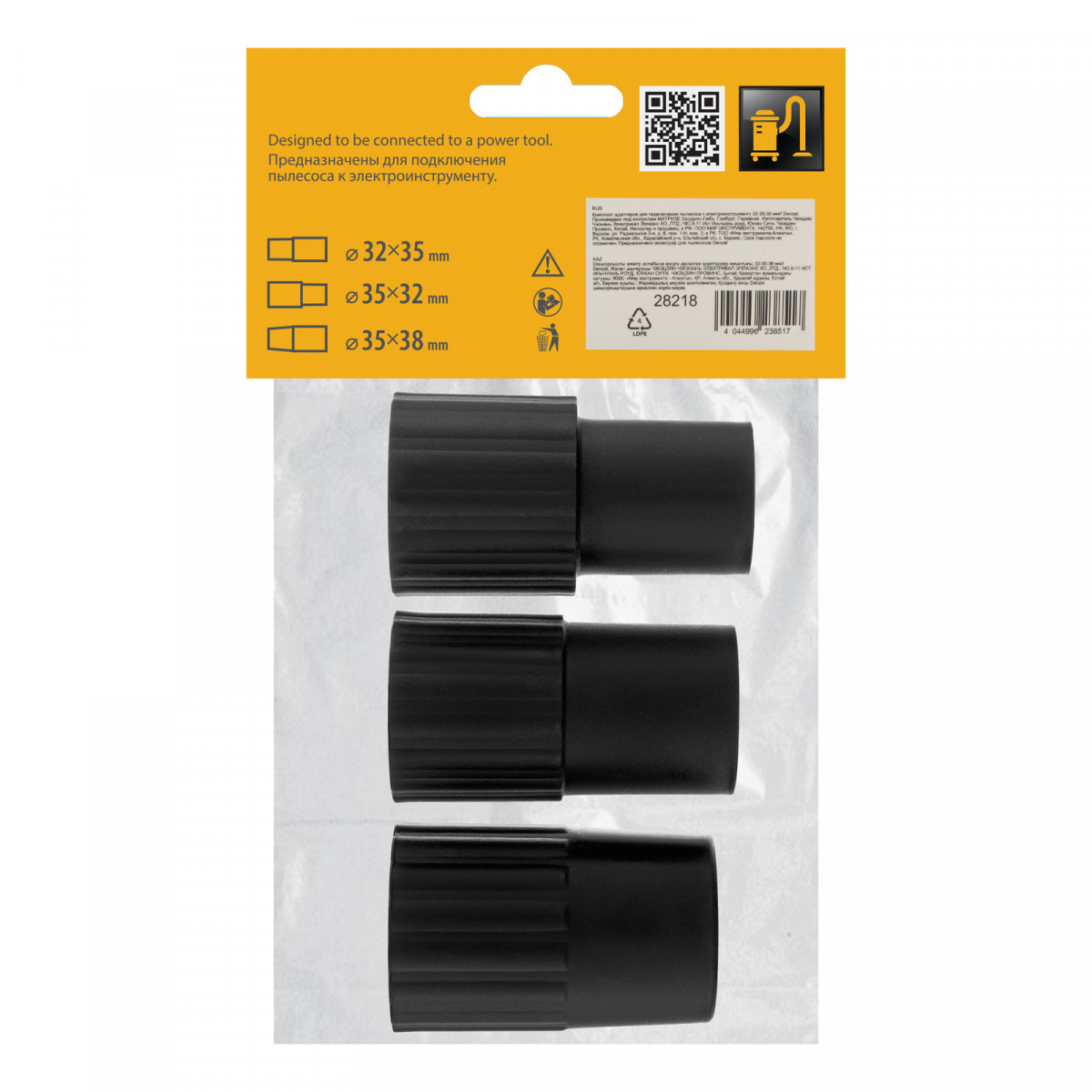 Комплект адаптеров для подключения пылесоса к электроинструменту 32-35-38 мм Denzel