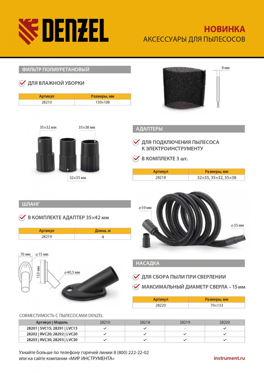 - Продуманная комплектация — в наборе 3 адаптера для подключения электроинструмента с патрубками различных диаметров.