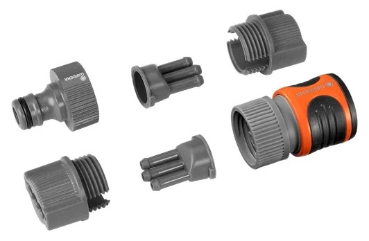 В комплект входят все необходимые соединительные элементы базовой системы Original GARDENA для подключения шланга-дождевателя GARDENA (элементы для входного и выходного концов шланга). Простая сборка элементов.