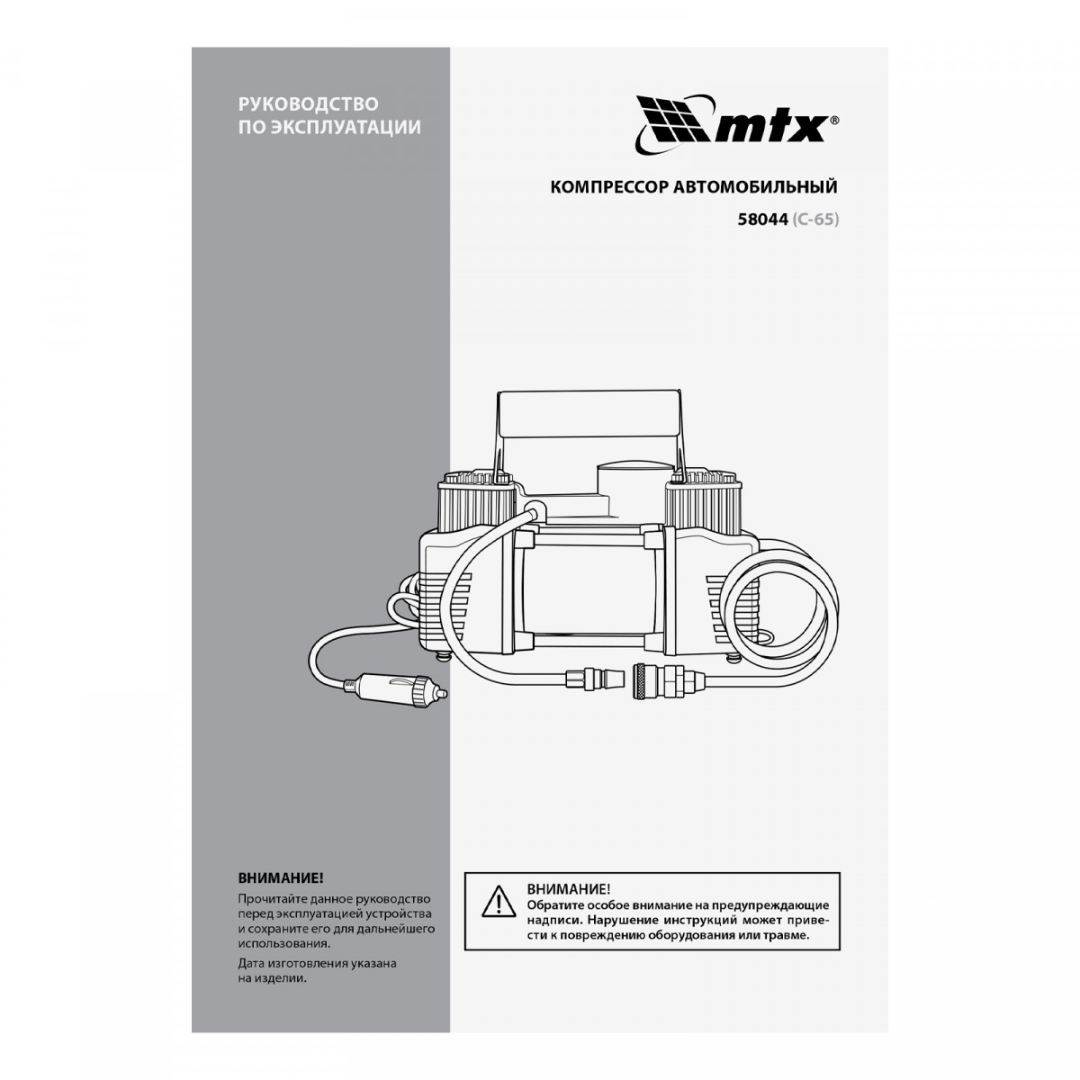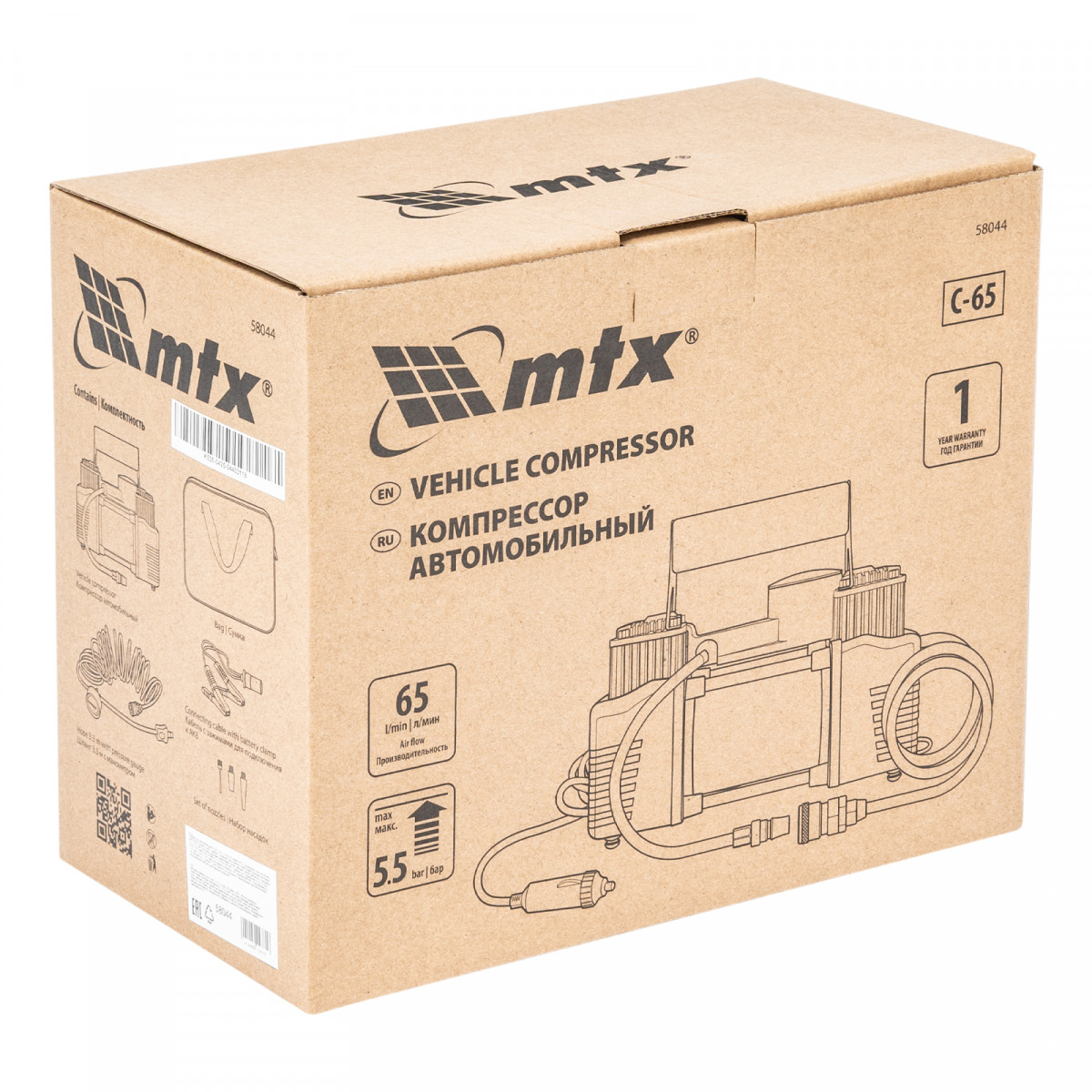 Компрессор автомобильный C-65, 12 В, 10 атм., 65 л/мин MTX