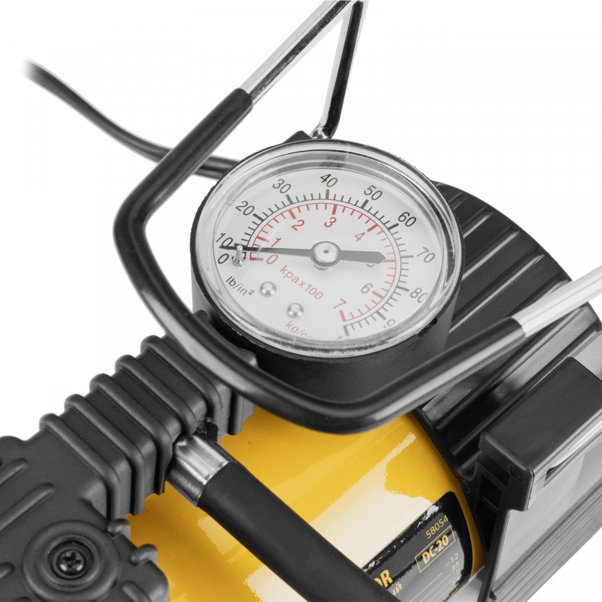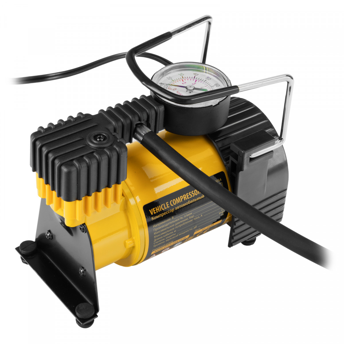 • Компрессор оснащен манометром, что упрощает контроль давления и позволяет вовремя прекратить накачку.