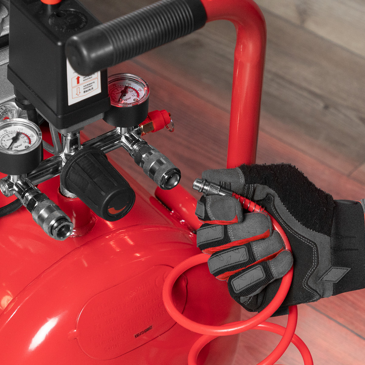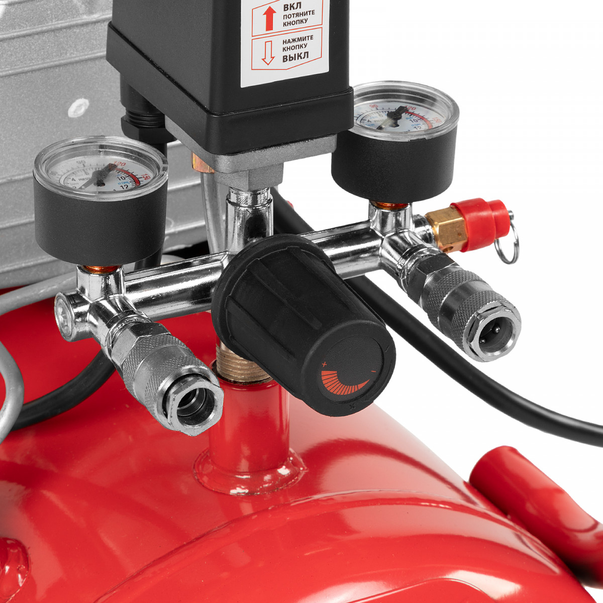 • Удобный контроль рабочих параметров — 2 манометра и регулятор позволяют отслеживать и корректировать давление для корректной работы пневмоинструмента.