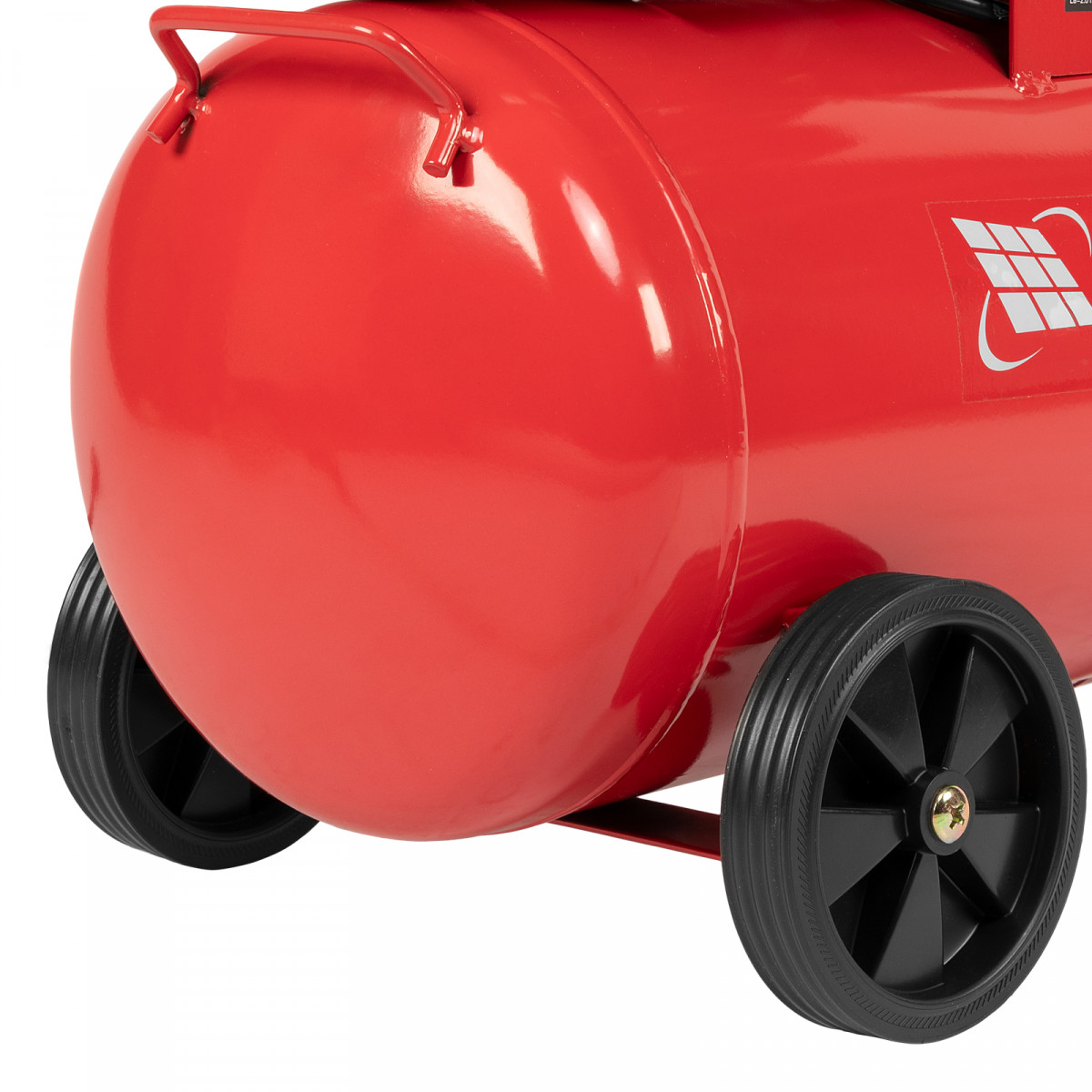 • Мобильность — благодаря колесам и рукоятке компрессор удобно разворачивать и перемещать по рабочей площадке.