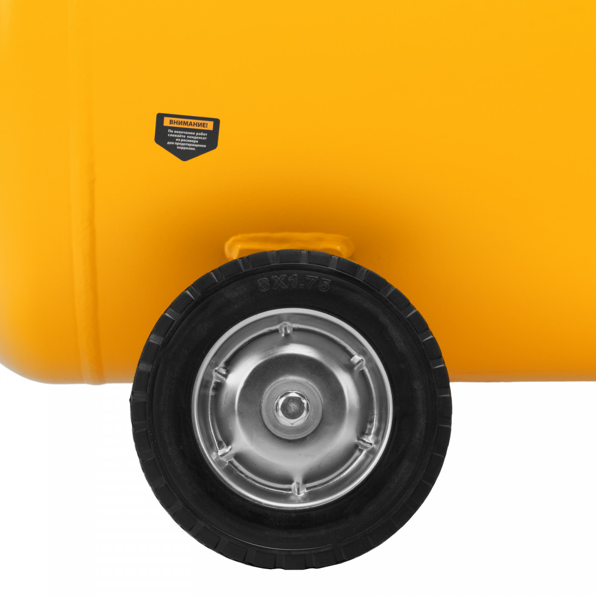 • Удобная транспортировка — на компрессоре установлены колеса, в т. ч. поворотные, и П-образная рукоятка.