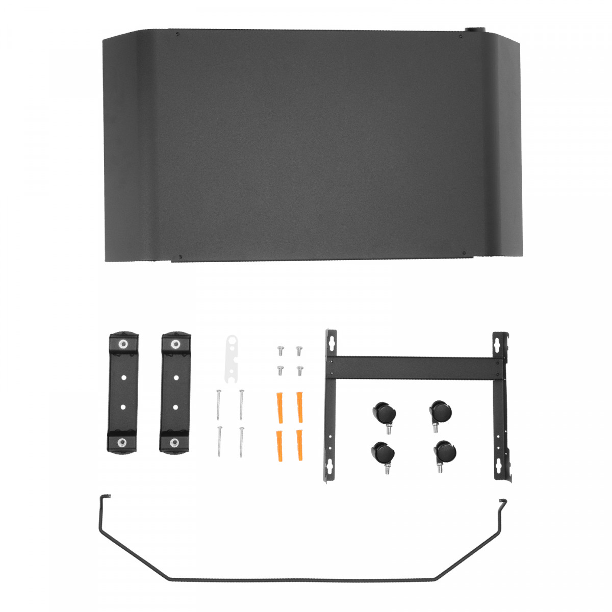 • Напольная или настенная установка — в комплект поставки включена цельнометаллическая крепежная рамка для стены, а также стальные ножки с колесами.