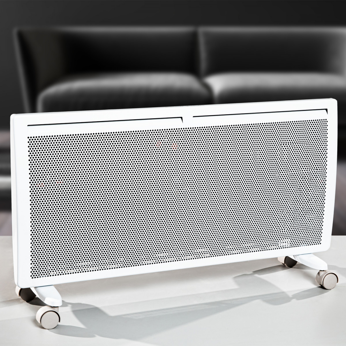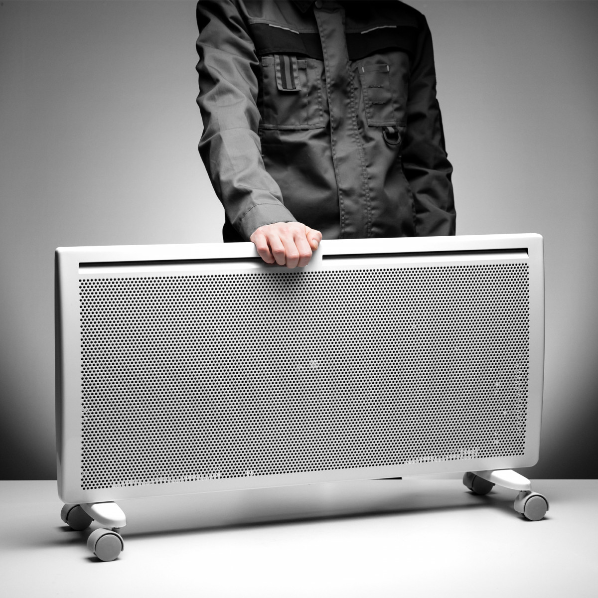• Высокая энергоэффективность — гибридный нагревательный элемент излучает инфракрасное тепло и одновременно обеспечивает конвекцию воздуха, что позволяет прогревать помещение заметно быстрее при тех же затратах энергии.
