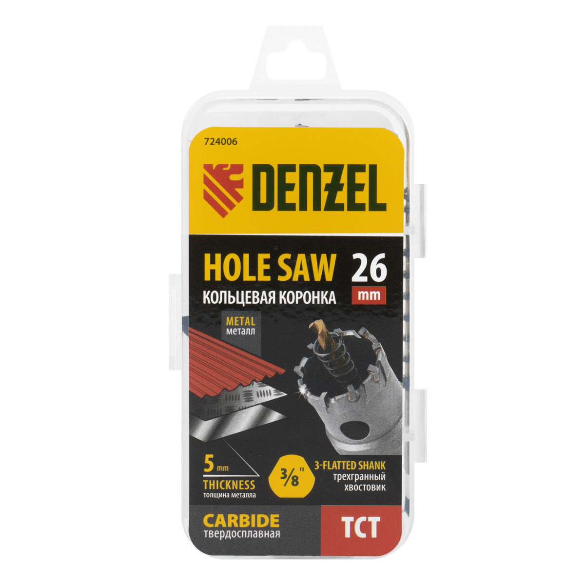 Коронка по металлу твердосплавная, 26 мм Denzel